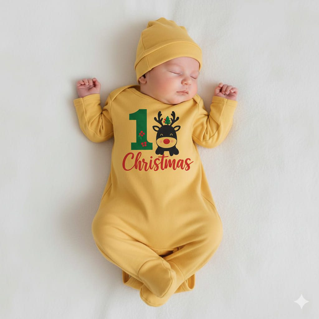 Design: Features a “1st Christmas” graphic centered on the chest.