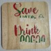​Materials: The coaster is made of light-colored wood with a visible horizontal grain, serving as a rustic background for the decorative elements.